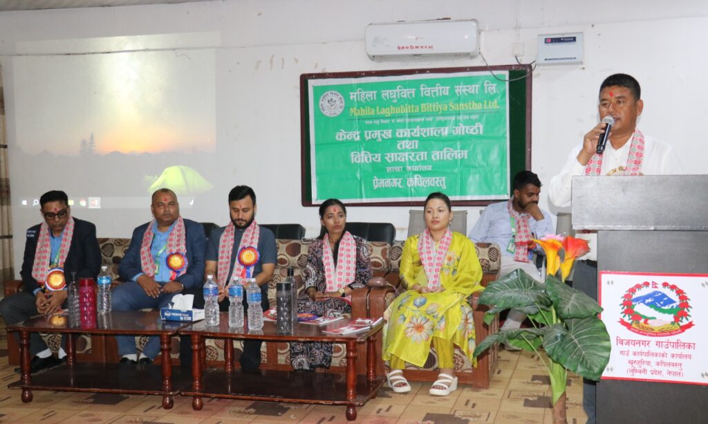 कपिलवस्तुकाे विजयनगर गाउँपालिकामा महिला लघुवित्त वित्तीय संस्थाले केन्द्र प्रमुख कार्यशाला गोष्ठी तथा वित्तीय साक्षरता तालिम सम्पन्न गरेको छ । कार्यक्रम महिला लघुवित्त वित्तीय संस्था लिमिटेड शाखा कार्यालय प्रेमनगरको आयोजनामा सम्पन्न भएको हो ।