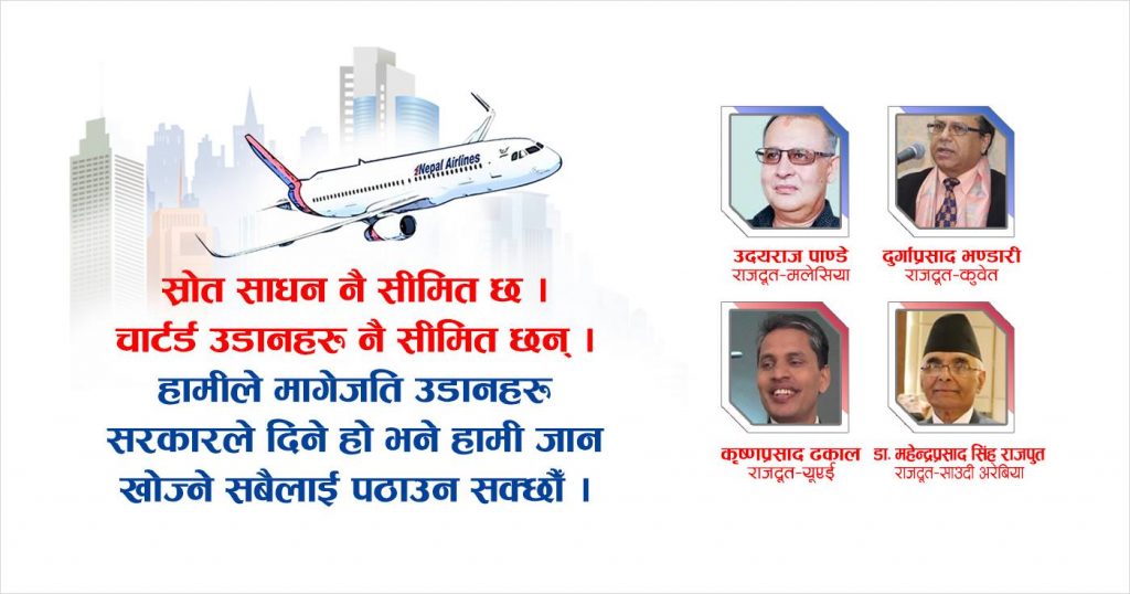 तर यहाँबाट फर्कन पाए हुन्थ्यो भन्ने नेपालीको सङ्ख्या ठूलो छ । सङ्ख्या मात्र होइन, यहाँ केही साथीहरु साँच्चै समस्यामा पनि हुनुहुन्छ । त्यो भएकाले यो हतार पनि हो र समस्या पनि छ । सीमित सङ्ख्यामा उडान हुँदा ठूलो सङ्ख्यामा फर्कने भएकाले भनेको समयमा फर्कन नसक्दा समस्या देखिएको छ ।पहिलो चरणमा १० हजार यात्रु नकट्ने गरी एक सय उडान नबढ्ने गरी ६ महिनाको योजना ल्याएको छ । यसबाट नेपाबाट पनि आवतजावत गर्न सहज हुनेछ । यसले आवतजावतमा सहज हुने आश छ ।