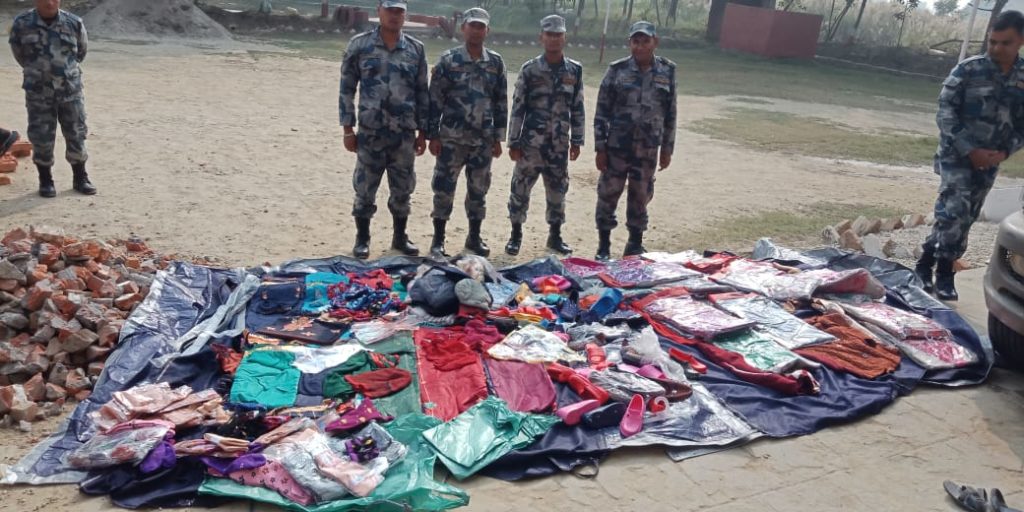शसस्त्र प्रहरी बल कृष्णनगर गुल्म बाट खटिएको मोबाइल टोलीले चेक जांच गर्ने क्रममा भारत बाट अवैध रुपमा नेपाल तर्फ ल्याउदै गरेको अवस्थामा उक्त कपडा बरामद गरिएको शसस्त्र प्रहरी नायब उपरीक्षक सुशील कुमार शाहीले बताएका छन् । लेडिज सुट, उनको स्विटर,चप्पल, जुत्ता, गलबन्दी र कस्मेटिक सामान एक लाख छत्तीस हजार नौ सय (१३६९००) रुपैया बराबर को बरामद गरेको र उक्त समान आवश्यक कार्यवाहीका लागी कृष्णनगर भन्सार कार्यालय पठाइएको शसस्त्र प्रहरी बल कृष्णनगरले जानकारी दिएको छ ।