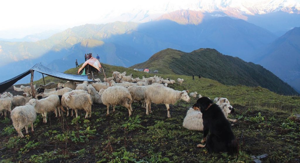 ‘कुकुर भएपछि यो वनको बीचमा रहेको गोठमा हामी रातभरी सुत्न पाउछौँ, भेडाबाख्रा पनि सुरक्षित हुन्छन्।’ उनले भने, ‘बिहान कुकुरलाई खाना दिएपछि छोडिदियो दिनभरी भेडाबाख्रासँगै वनमा जान्छन् अनि साँझ भेडासँगै गोठमा आउछन्।’
