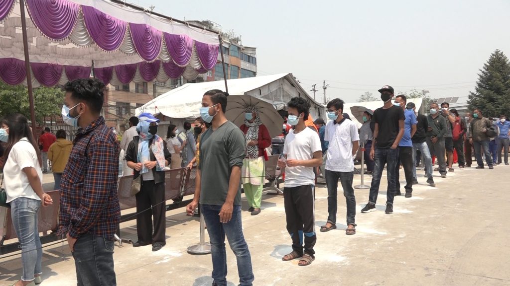 धेरैजसो खोप केन्द्रमा खोप लगाउन पुग्नेहरुको लामो लाइन छ । भौतिक दूरी त परको कुरा, कतिपयले त लाइनमा बस्दा समेत मास्क लगाउने गरेका छैनन् । सरकारले सार्वजनिक ठाउँमा हिँडडुल गर्नका लागि पनि खोप कार्ड अनिवार्य गरे पछि अहिले खोप लगाउनेहरुको भिड बढेको हो ।