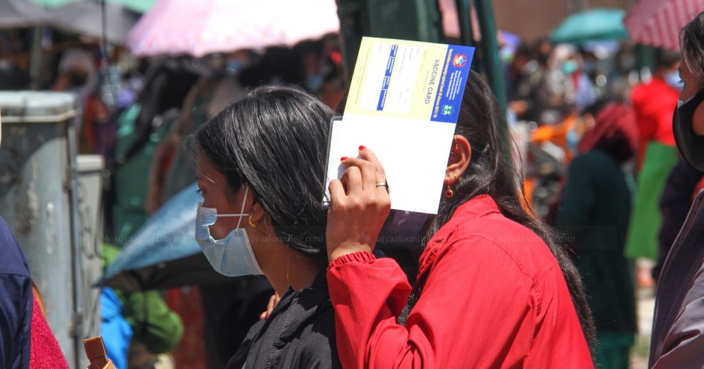 काेराेना सङ्क्रमण दर बढ्दै गएपछि सरकारले गएको माघ ७ गतेदेखि सार्वजनिक सेवाका लागि खोप कार्ड अनिवार्य गरेकाे हाे ।