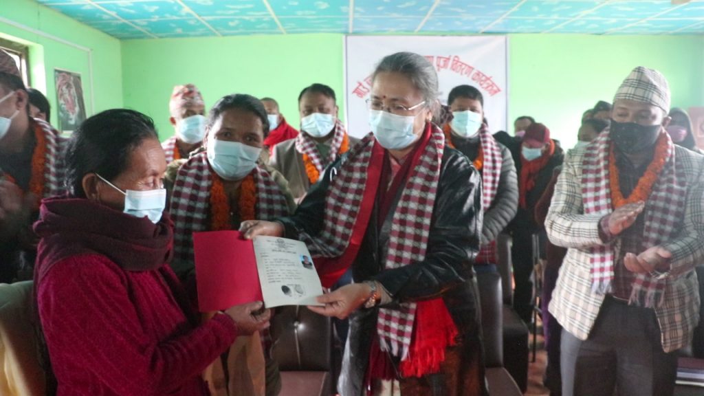चितवन – सरकारले चितवनका भूमिहीनहरूलाई जग्गाधनी प्रमाणपत्र वितरण गरेको छ । आज शुक्रवार चितवनको साविक इच्छाकामना गा.वि.स.७ र जुटपानी गा.वि.स. ९ का भूमिहीनहरूलाई सरकारले गाउँ ब्लक जग्गाधनी प्रमाण पुर्जा वितरण गरेको हो ।