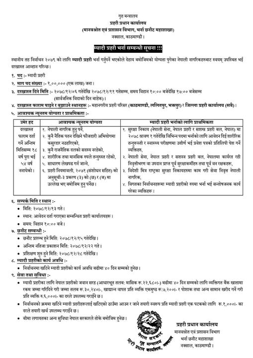 चुनावका लागि १ लाख जना म्यादी प्रहरी माग, ६ गतेदेखि आवेदन दिन पाइने