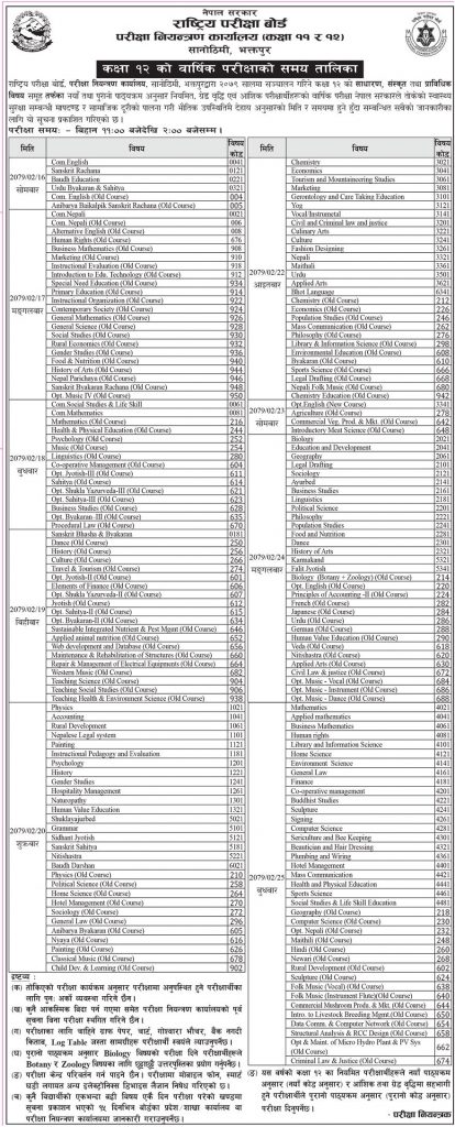 बाेर्डले २०७९ जेठ १६ गतेदेखि हुने परीक्षाको समय तालिका सार्वजनिक गरेको हो ।