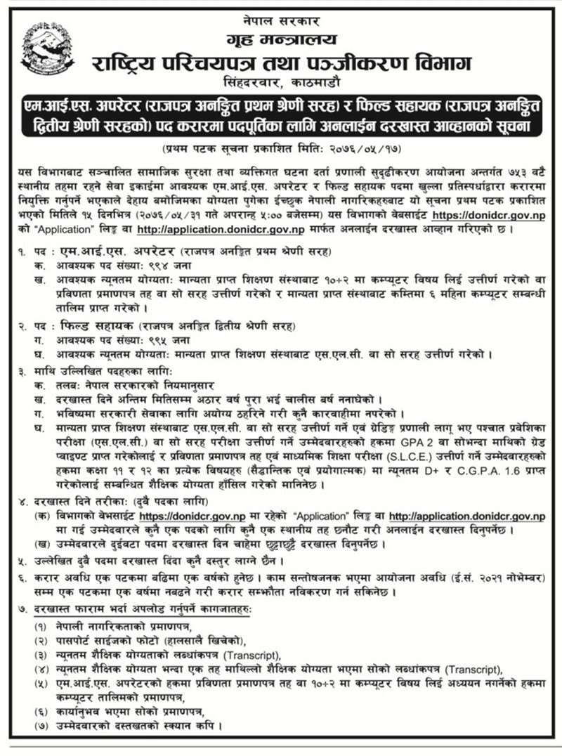 गृहमन्त्रालयले माग्यो २ हजार सुब्बा र खरिदार