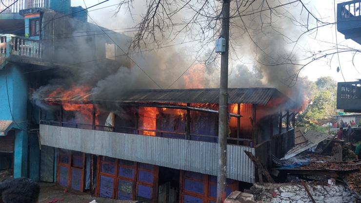 ताप्लेजुङ आगलागी : ७० लाख रुपैयाँ बराबरकाे क्षति भएकाे प्रारम्भिक तथ्याङ्क