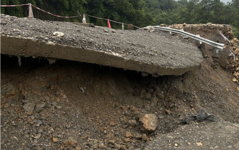 अविरल वर्षाले भासियो निर्माणाधीन सडक