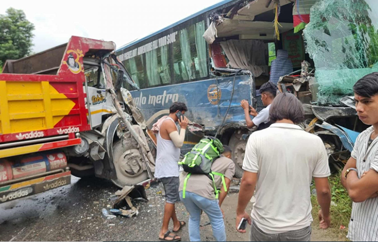 धादिङमा बस र टिपर ठोक्किँदा ६ जना घाइते