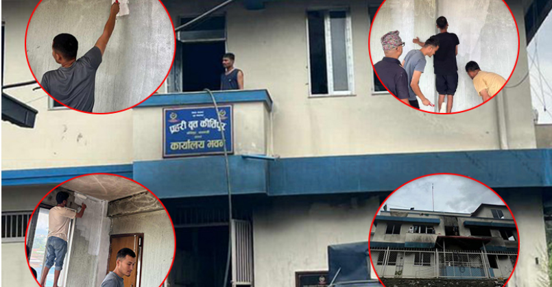 क्षतिग्रस्त कीर्तिपुर प्रहरी वृत्त मर्मत गर्न जुटे युवा, भन्छन् : प्रहरी हाम्रा लागि, हामी प्रहरीका लागि’