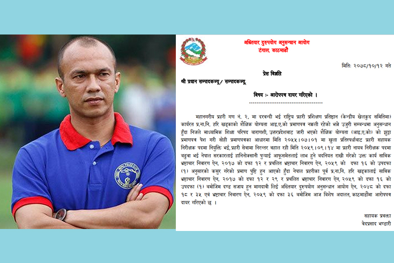 राष्ट्रिय फुटबल टिमका पूर्व कप्तान हरी खड्काविरुद्ध भ्रष्टाचार मुद्दा