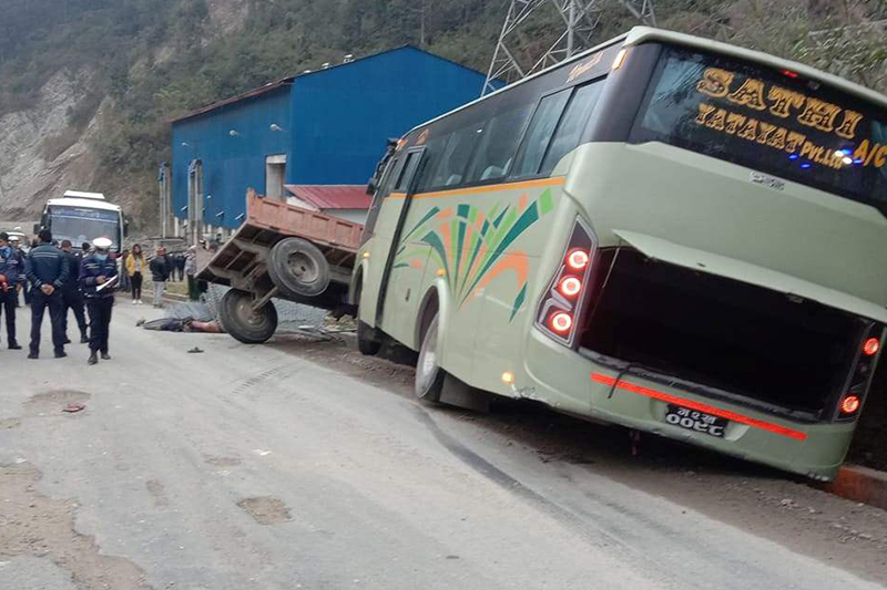 बस र ट्रयाक्टर ठोक्किँदा एकको मृत्यु २३ घाइते