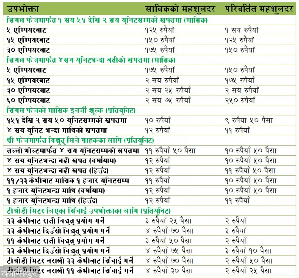 आजबाट घट्यो विद्युत् महशुल, अब बिजुली बाल्दा कति लाग्छ शुल्क?