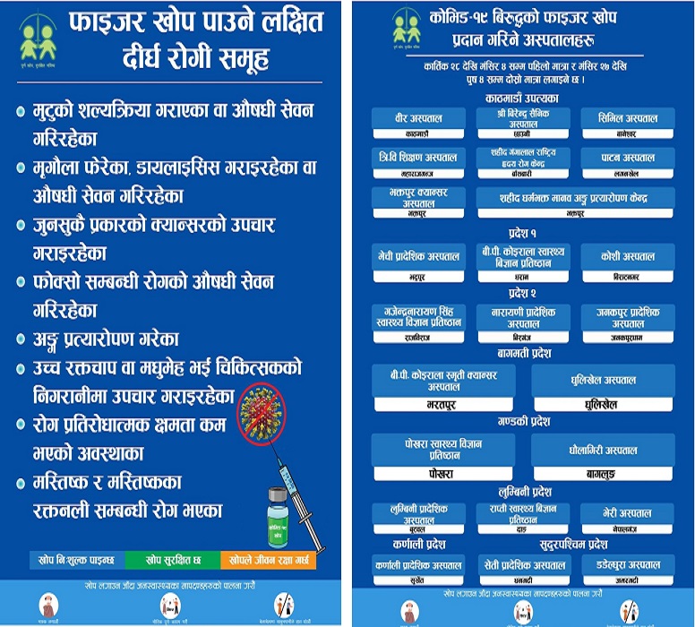 आजदेखि दीर्घरोगीलाई फाइजर खोप दिइँदै, यी अस्पतालमा लगाइन्छ खोप