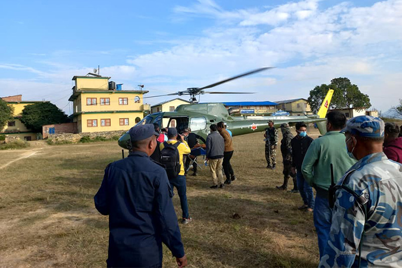सल्यान बस दुर्घटना अपडेट : ८ घाइतेलाई उपचारका लागि हेलिकप्टरबाट नेपालगञ्ज पठाइयो