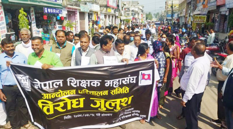 प्रधानाध्यापमाथि दुर्व्यवहार गर्नेलाई कारबाहीको माग गर्दै शिक्षकको प्रदर्शन
