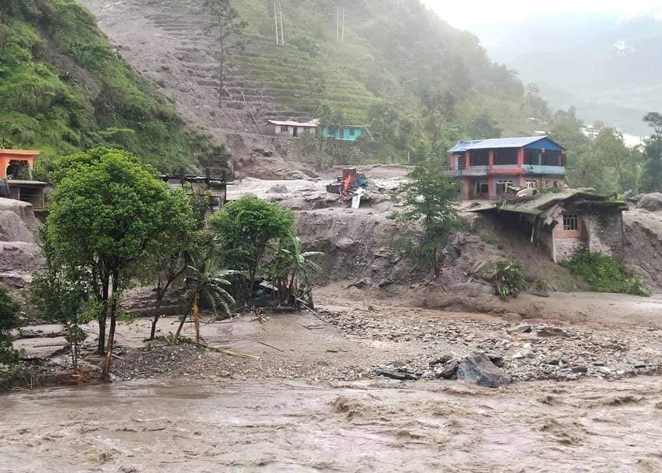 सिन्धुपाल्चोकको जम्बुमा १५ घर बग्यो, २ जनाको शव भेटियो,१८ जना बेपत्ता