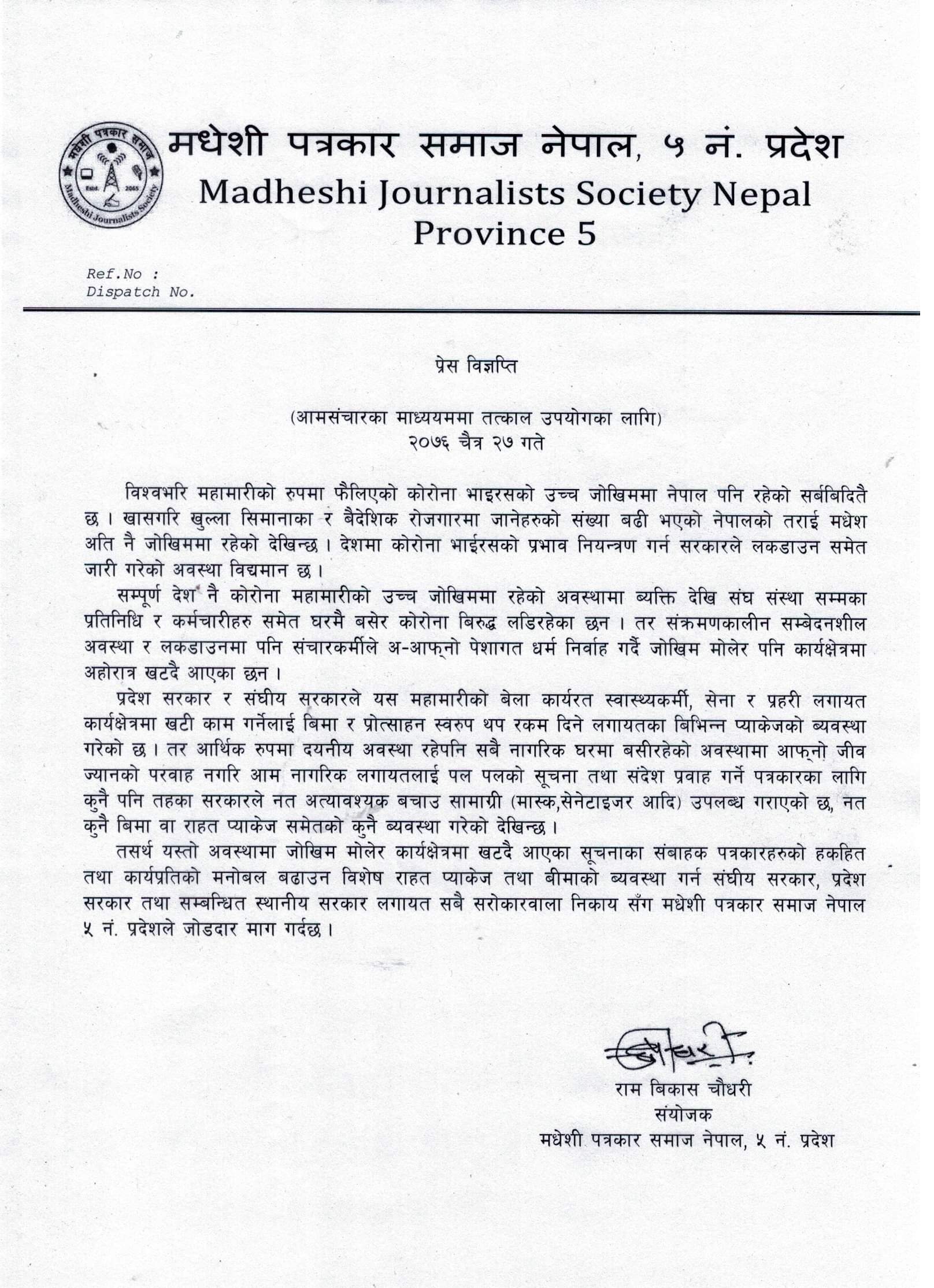 पत्रकाहरुको प्रोत्साहनका लागि विशेष प्याकेज ल्याउन मधेशी पत्रकार समाजको माग