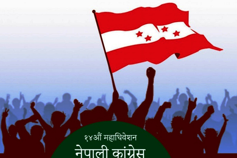 कांग्रेसको १४औँ महाधिवेशनको आधिकारिक ब्यानर सार्वजनिक