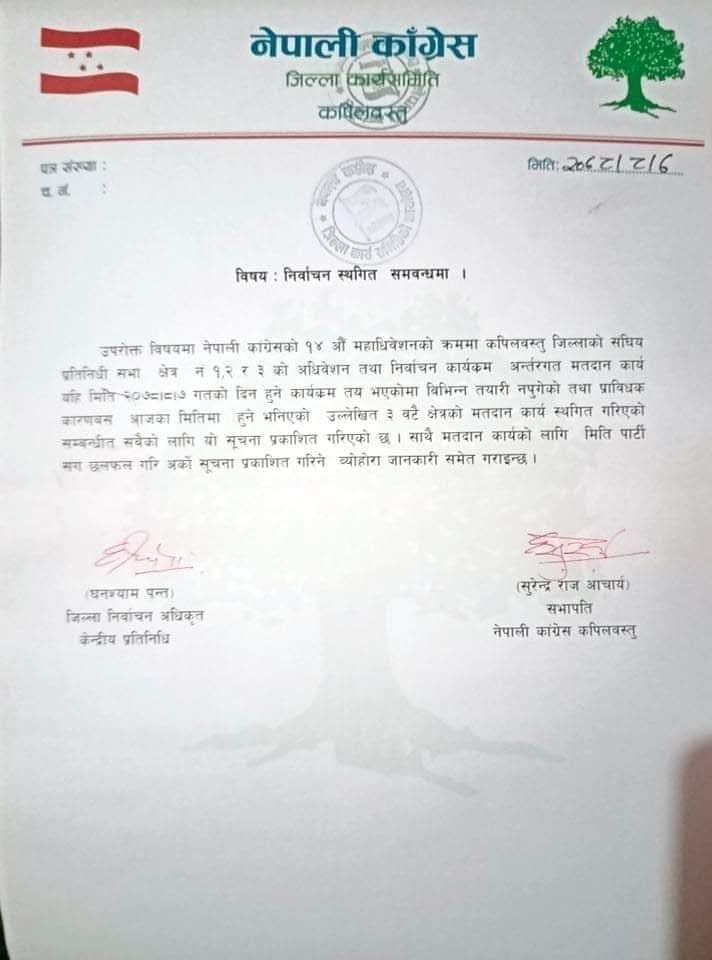 कपिलवस्तुमा जिल्ला सभापति सुरेन्द्र राज आचार्य टिमलाई हार्ने डर माहौल विग्रए पछि आचार्य गुटले बिबाद मच्चाउँदै अधिवेशन स्थगित