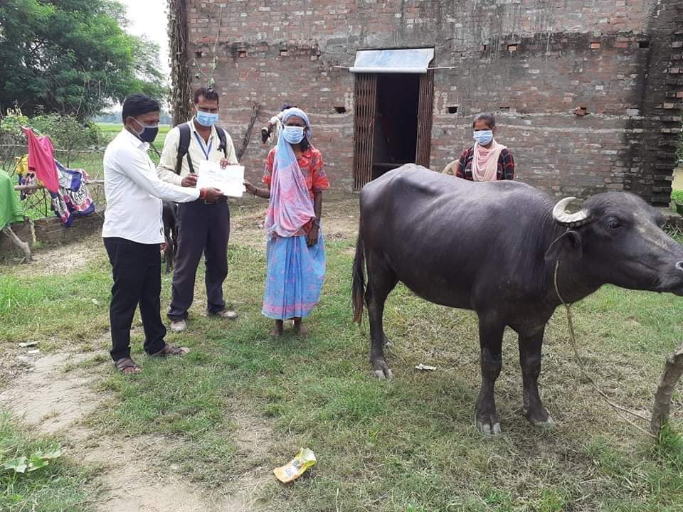 माहुरीहाेमकाे सहज परियाेजना अर्तरगत बाख्रा तथा भैसी वितरण